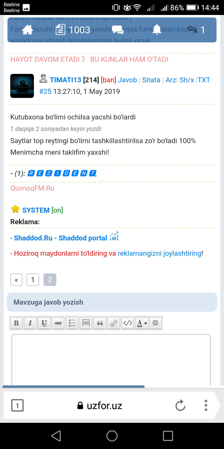 Forumini soddalashtirish bo‘yicha takliflar (fikringiz muhim)