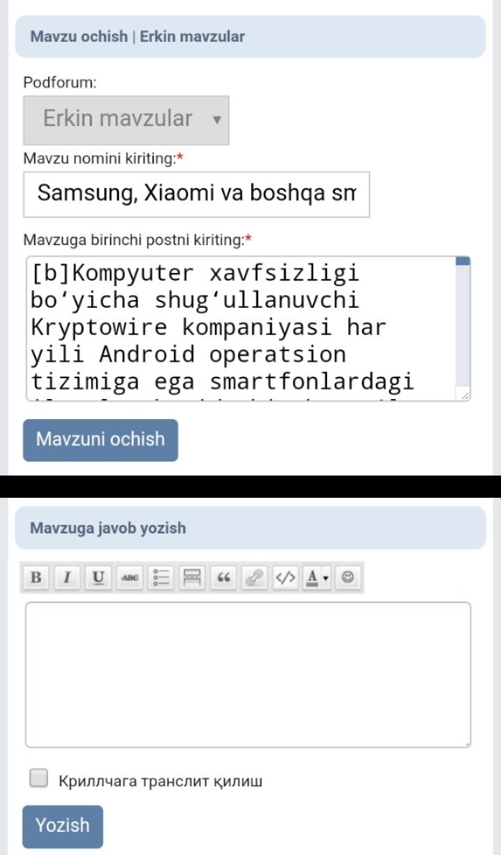 Forumini soddalashtirish bo‘yicha takliflar (fikringiz muhim)