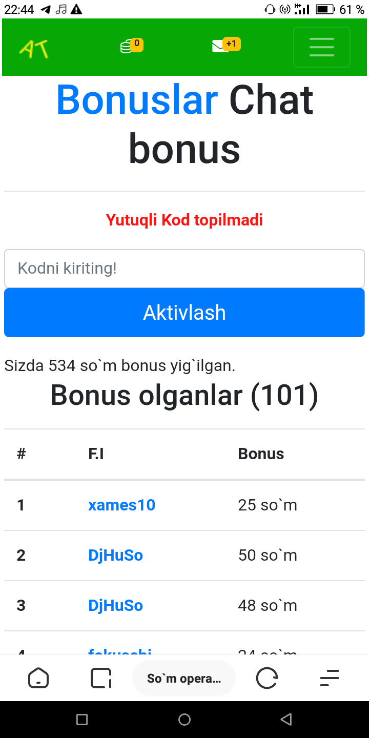 Kodlarni aktivlab Pul ishlash - mavzusi fayllari