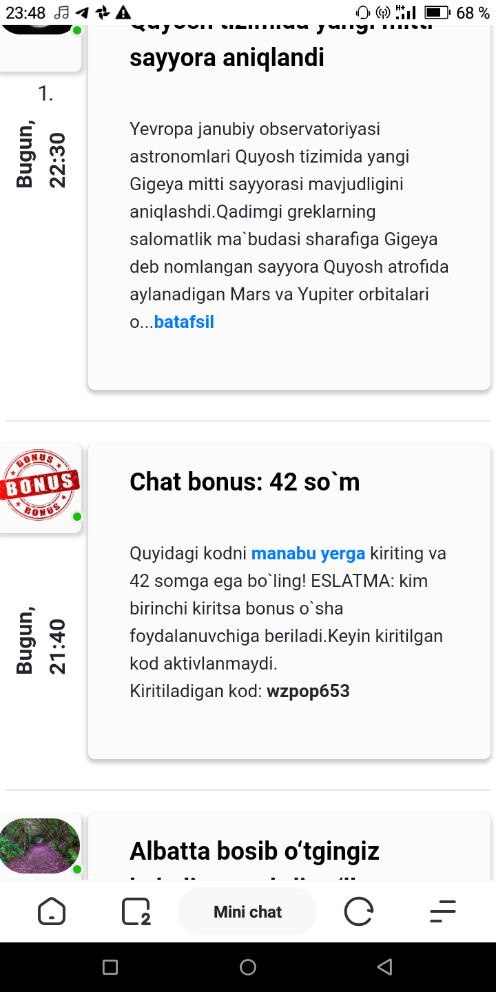 Mavzularda, chatlarda javoblar, tizimdagi yangilanishlar