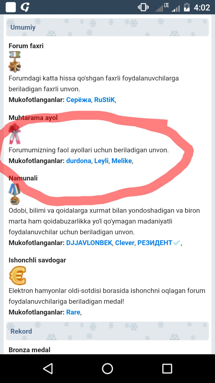 Nega saytdan shunchaki ro'yxatdan o'tib qo'ygan qiz profillarda medal boru lekn forum ochilganidan berka bir hafta (150soat)lab saytda bo'lganlarda yo'q
