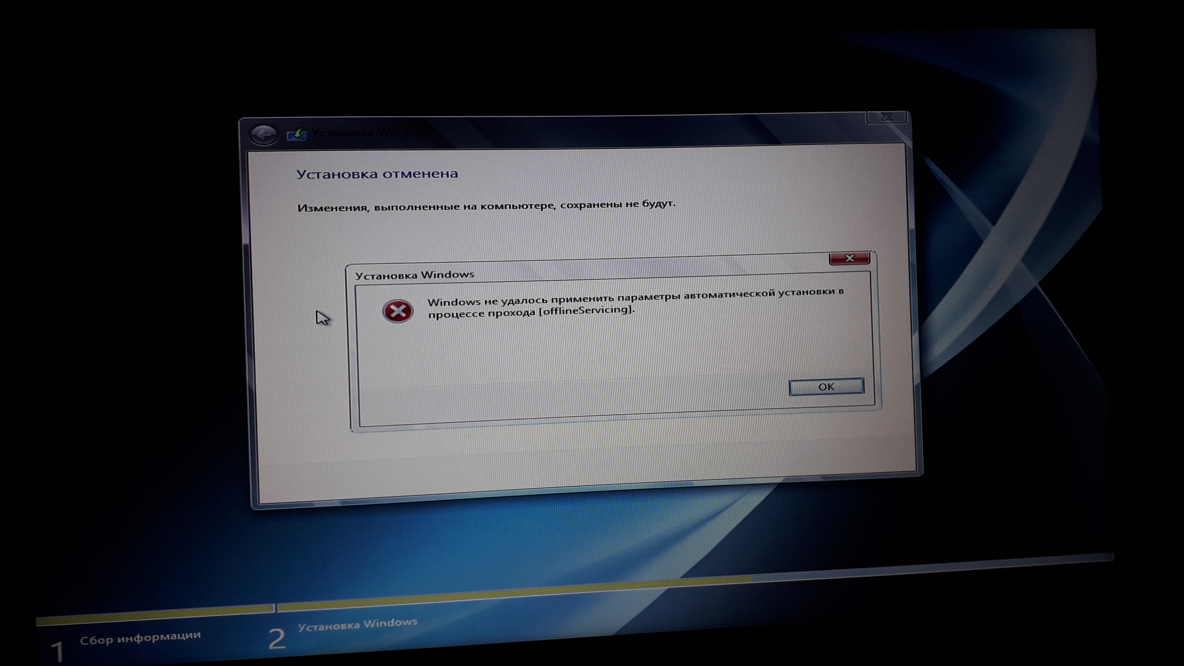Windows не удалось применить параметры автоматической установки в процессе прохода [offlineServicing]