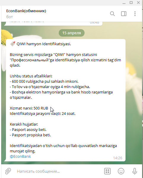 Men O'zbekiston pasportlariga Professional status olib beraman. Profssional statusda 600 000 rublgachahammada harxil summa ekanda qayerdan qilyapsilar o'zi bilsak bo'ladimi?