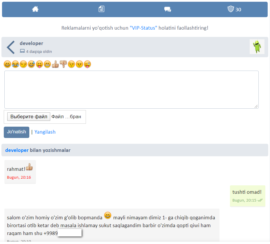 Mavzularda, chatlarda javoblar, tizimdagi yangilanishlar