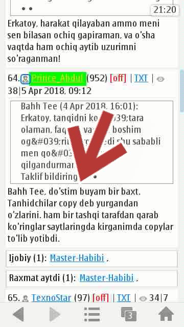 #47 ga qo'shimcha. FOYDA QANDAY BO'LADI ? deydiganlarga. HECH QANDAY yani umuman foyda yo'q (boshlanishiga). Saytga shunchaki o'zimizni qiziqtirgan va muhokama qilishni istagan mavzudagi maqolalarni chiqaramiz. (boshqa saytdan copy qilib emas)