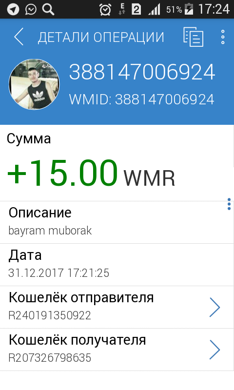 Iltimos meni niyatim 15 kishiga 15 rubldan ulashmoqchiman iloji bo'lsa bitta foydalanuvchi 1 ta wmr (R) raqamini yozib yuborsin, wmr ni hammaga navbati bilan tashab beraman, sh/x ga ortiqcha xabar yozmang. Qabul qilganlar shu yerga qabul qildim deb yozib borsin, mayli hammaga omad.