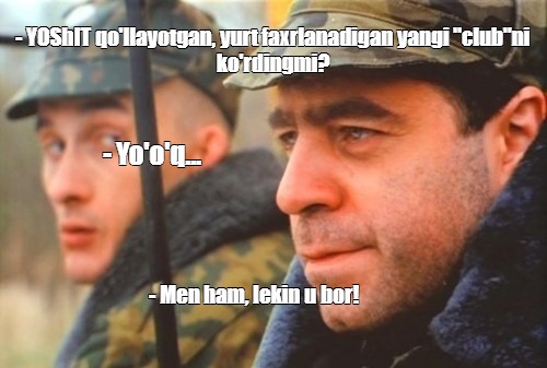 Bir kuni Eshmat Normatga borib yur pul topamiz debdi Normat qanday pul topamiz desa Eshmat Yoshlar Ittifoqi paddeshka qiladi debdi qanday ish qilamiz desa Yoshlar Ittifoqi paddeshka qiladi debdi Tushunarsiz mavzu va tushunarsiz "Club" qum oʻynashni qachon yigʻishtirisila
