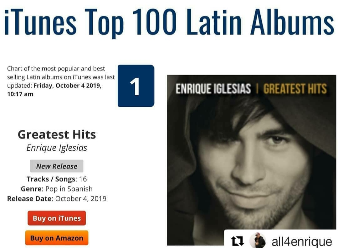 iTunes Lotin amerikasi albomi top-100 taligida Iglesias Albomi 1-o'ringa chiqib oldi.
