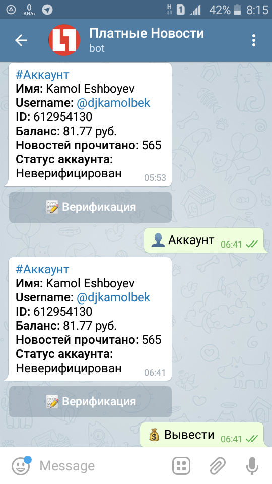 Hammaga assalomu eleykum sizlarga xozirda taniqli va ancha gapso'z bo'lip yurgam bot xaqida pul ishlashni etip utmoqchiman