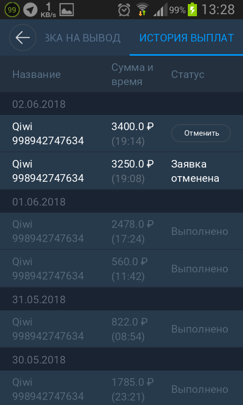 Mana bu esa xisobimdagi summa va qiwi raqamimga vivod qilish xaqida surov screnlari surovda 3400 rubl belgilangan