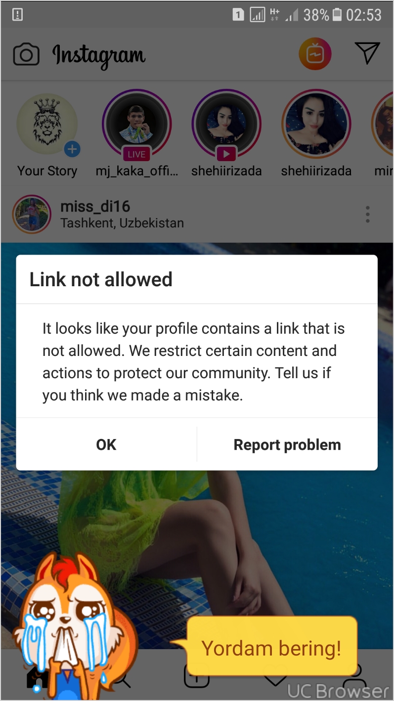 Instada like bosmoqchi bulsam screendagi dek muammo chiqyapti. #helpme