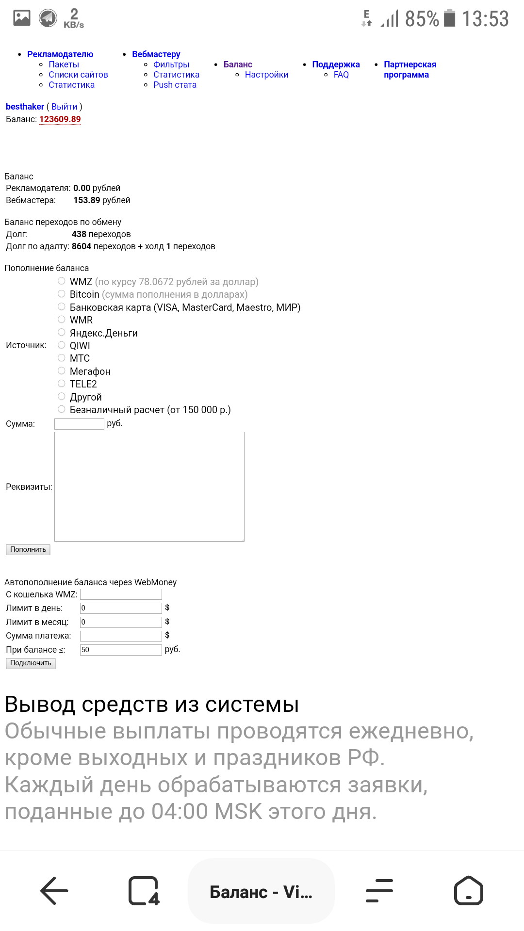 shunda qanday vivod qiladi pulimi olomayapmanVisitweb.com/balance.php juda oson saytni paaasiga qarang hamasi korinib trupdi