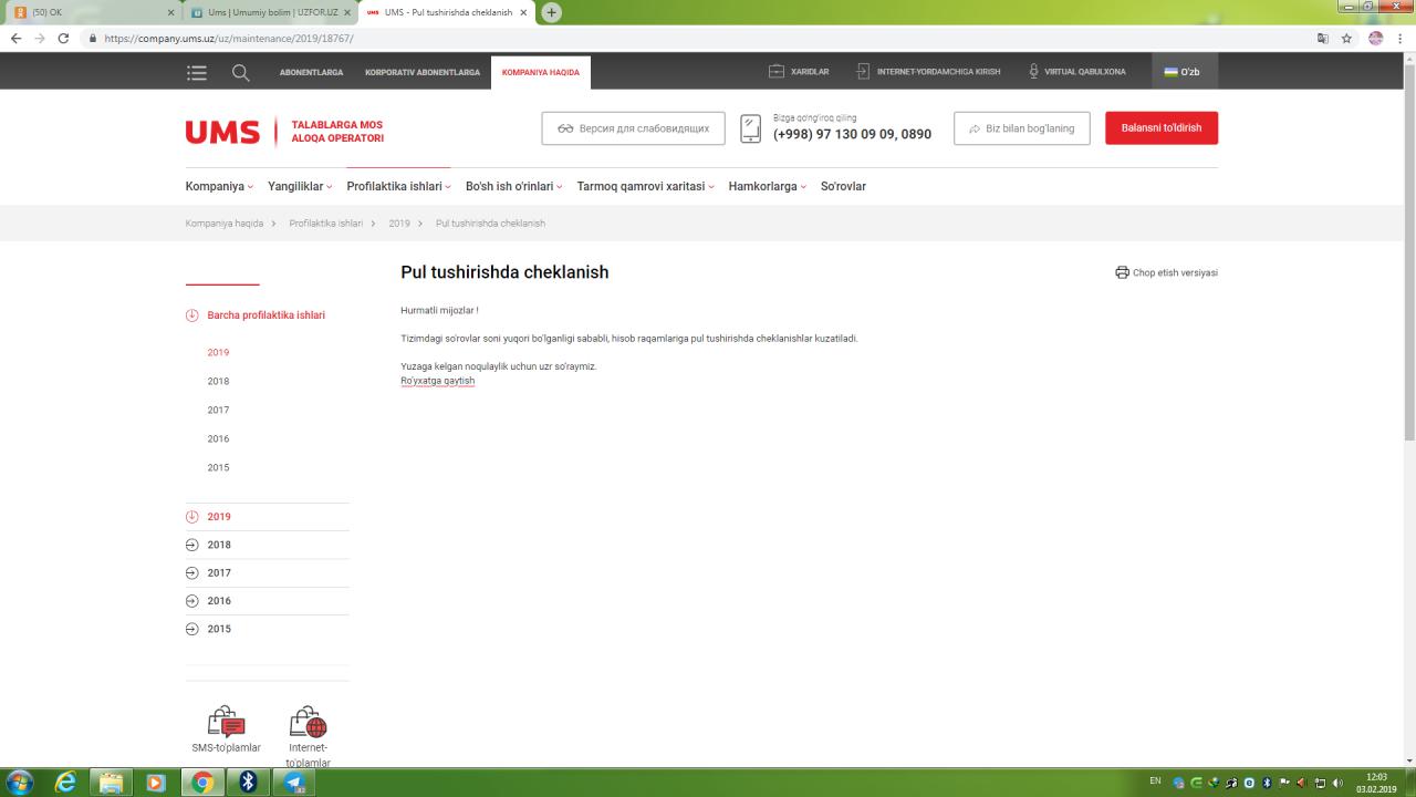 Huawei, 1-fevral kuni pul tushurishda cheklanish deb yozib quyibdiku ums official saytidaBugun uchinchi fevral haligacha tushmadi bunga nima deysiz?