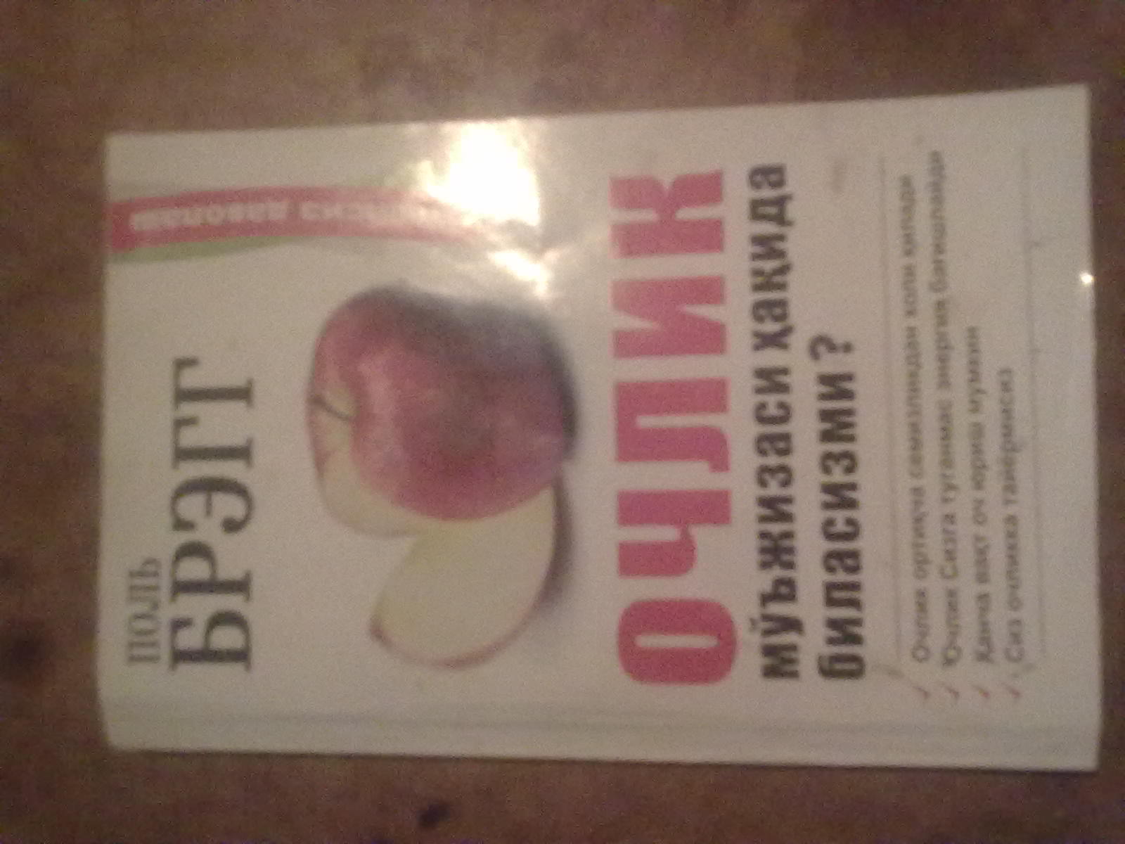 Sizningcha bu asrning eng muxum ixtirosi nimadan iborat ? Mug'ulistonda topilgan dinozavr tuxumimi ? Olimlar bu tuxumning 1 000 000 yildan beri mavjutligni aniqlashganini yozishgan edi. Yoki radioaktiv soatdir ?! Uning yordamida professor Leyl va Gant xamda uning kolleji yerning yoshi 1 230 000 000 yil deb xisoblashdi. Radioaktiv samolyotlarmi ? Telvizormi ? Radyomi ? Atom energiyasimi ? Vodorod bombasimi ? Yo'q bularning hech qaysisi emas. Zamonamizning eng katta ixtirosi menimcha bu meyorida och qolish yo'li bilan inson o'zini jismonan, aqlan va ruxan yoshartira olishdir. Tushuntrib berishmga ijozat bering. Biz ovqatlanamiz, u mayalab chaynaladi, so'ng xazm qilinib keraklisi badanga singadi, ortiqchasi chiqarib tashlanadi. Organizmdan kerakmas moddalarni chiqarib tashlash uchun juda katta kuch kerak. Bilasizmi ovqat xazm bo'lib ortiqchasi chiqib ketguncha 24.4 metr masofani bosib o'tadi. Buning uchun tana anchagina kuch va katta miqdorda energiya sariflaydi. . Поль Брэгг. Очлик мужизасинини биласизми . Toshkent 2014 yil.