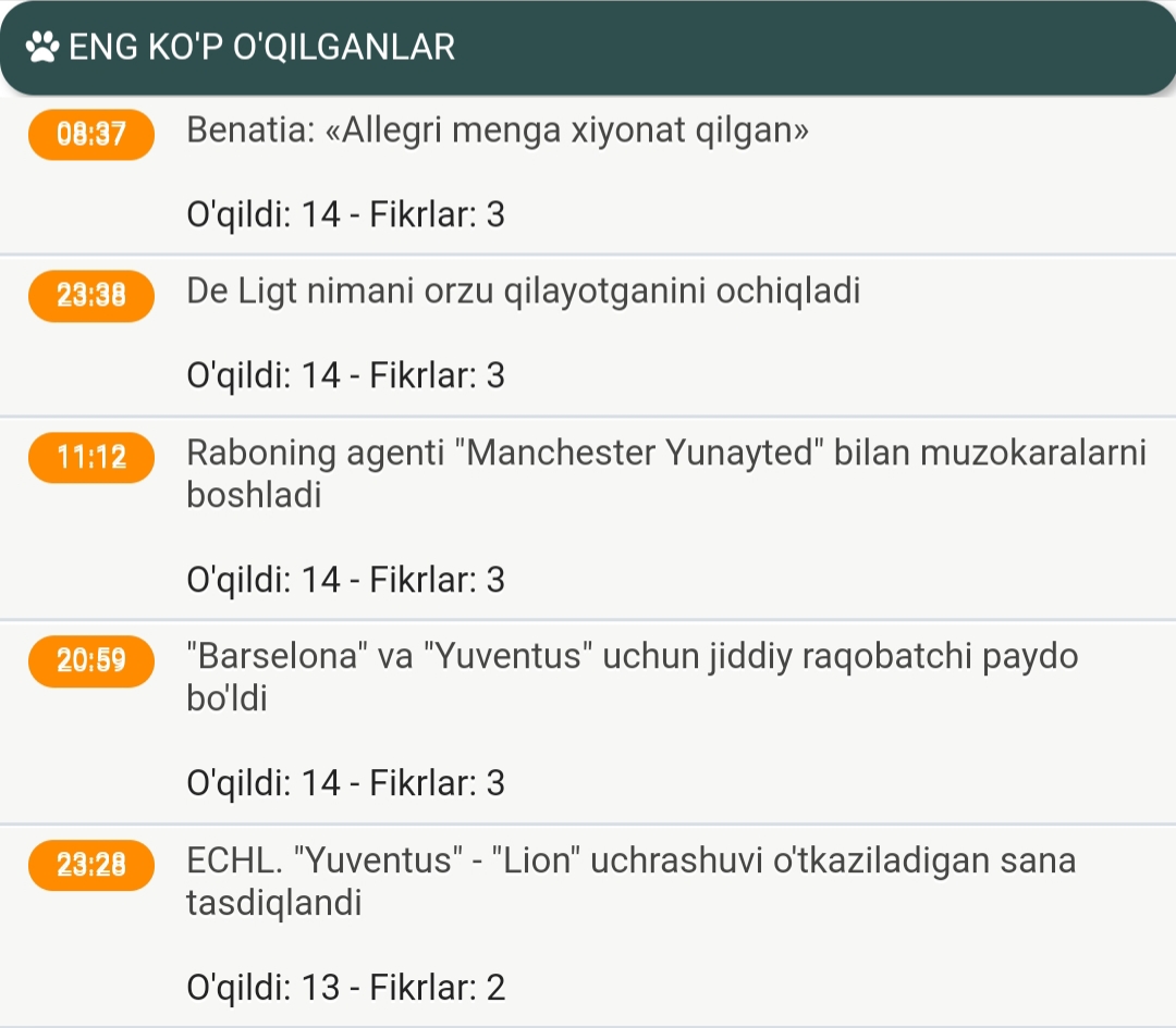 Dizayn yaxshi lekin qora bo'lganda undan ham yaxshi bo'lar edi, eng ko'p o'qilganlar bo'limida it panjasi lekin bu yerda tushmagan qandaydir ma'noda foydalanuvchi va mehmon uchun xurmatsizlik bo'lib qolyapti(boshqa qo'ying)