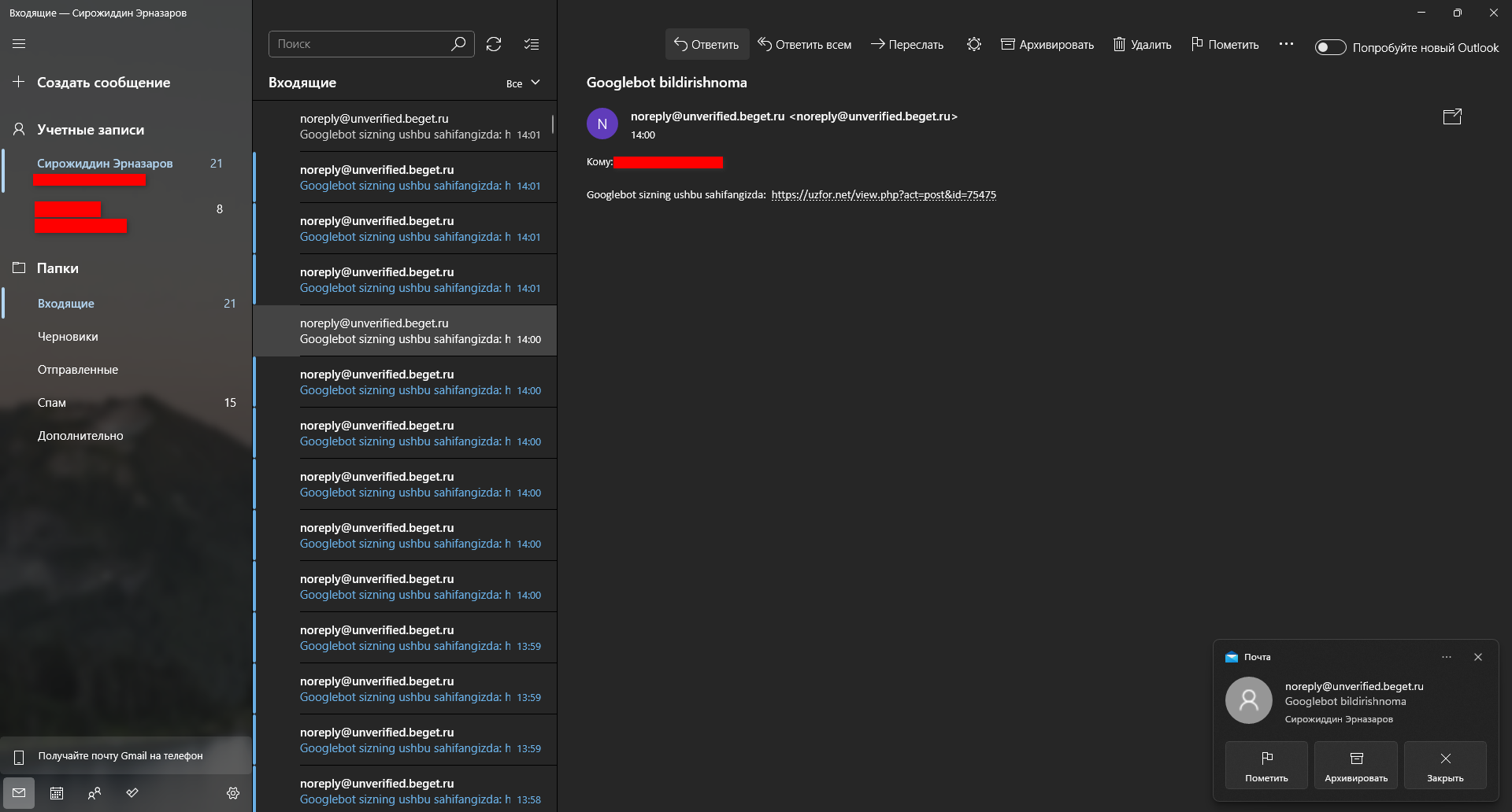 mail($email_manzil ,'Googlebot bildirishnoma', 'Googlebot sizning ushbu sahifangizda: '.$_SERVER['REQUEST_URI']); }