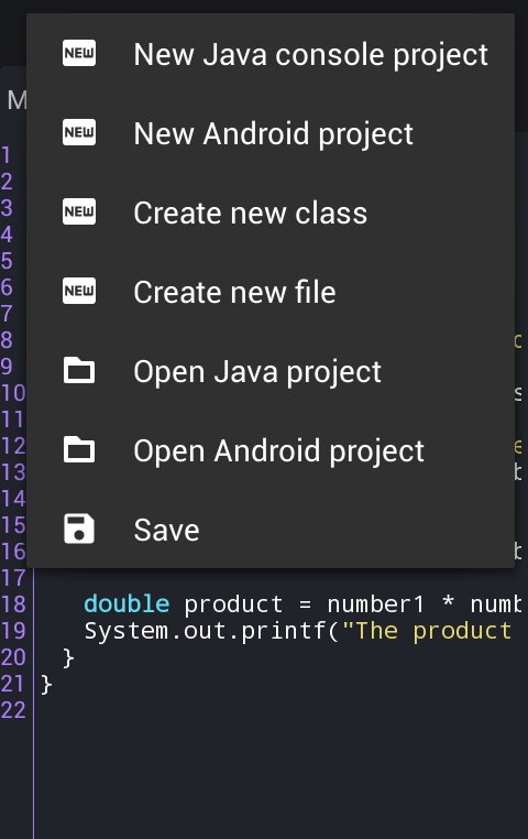 Java N-IDE- Bu toliq dasturlash uchun kerakli dastur.Unda java consol dastur va apk dasturlar yaratishingiz mumkin.