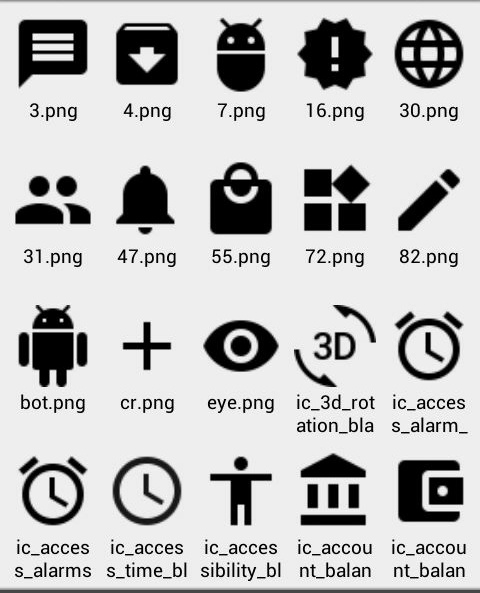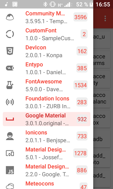 Hammaga salom! Android uchun ilova. Unda 14 xil icon liblar batafsil yozib otilgan. Masalan, fontawesome, material, foundation icons, icoinic va boshqalar.