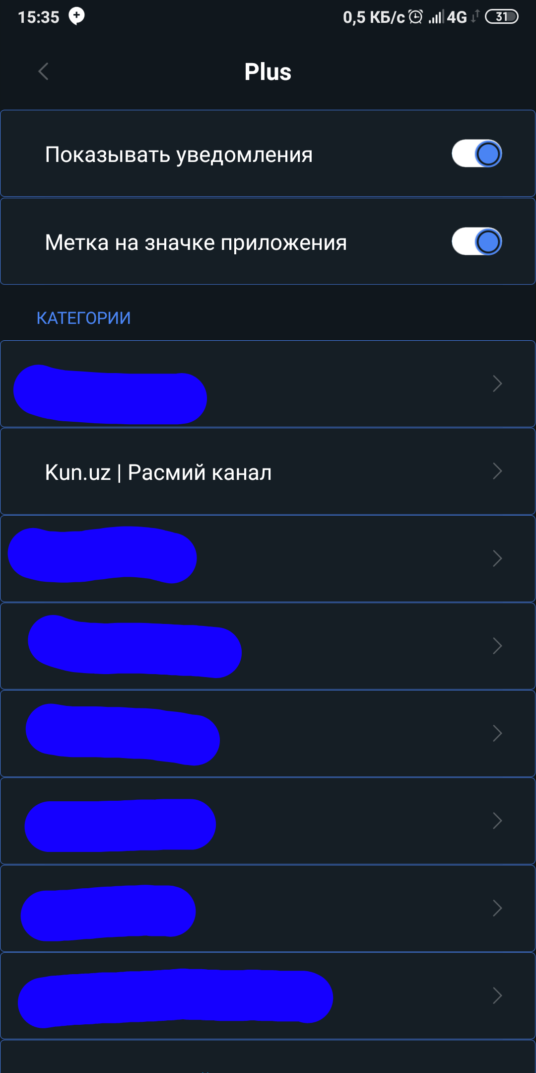 Hammaga salom! Manda note 5, OS ni Miui 10 gacha yangilagandim, Plus'da uvedomleniya'lar ovozi chiqme qoldi, Telegram' prilojeniya'sida esa hammasi joyida. Plus va telegramda guruh, kanal, akkauntlarning har bittasiga birinchi xabar kelganida prilojeniya parametrlaridegi uvedomleniya' boʻlimida yangi kategoriya ochilarkan. Oʻsha kategoriyala boʻyicha har bitta chatni ovozini bitta-bitta yoqib chiqsa boʻlarkan, lekin, xabar hali uvdomleniya qabul qilinmagan chatdan kelsa uni kategoriyaladan izlab yoqishga toʻgʻri kelarkan, xullas, ishi toʻxtamidi. Telegram va plus' parametrlarini solishtirdim, qanaqadir ulardegi boshlangʻich parametrla farq qilarkan, Plus'da ham boshlangʻich parametrlada uvedomleniyalani hamma funksiyalarini yoqilgan qilib oʻrnatishda yordam bervorila