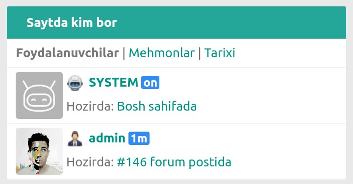 * Hazl, Bilmadim chota 4-5 kun avval nimadur bo'ldi ba'zi javalar kirmay qoldi saytda ham bir ikki muammo paydo bo'lib qoldi server(hosting)dan shekli