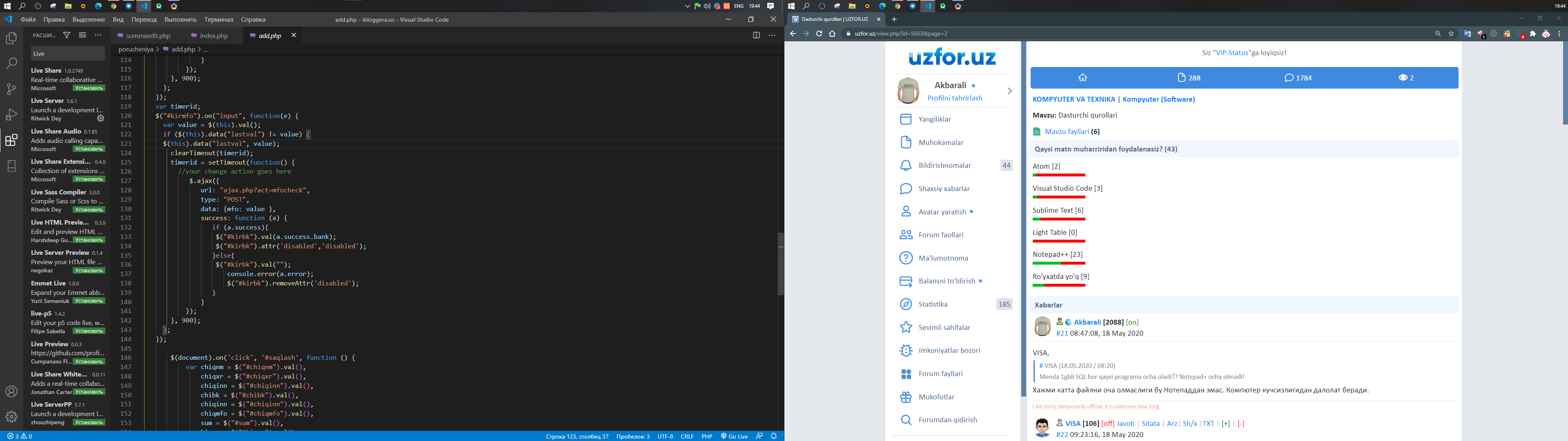 Manam komp da ishlashni boshladim. WM uchun eng kerali programmalarni nomini etvoringlarKod yozish uchun Sublime Text 3 dasturini tavsiya qilaman. Luboy dasturlash tilidagi kodlarni tahlil qilib yozs bo'ladi.