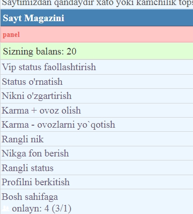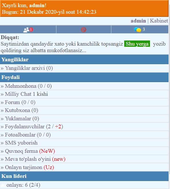 Akbarali, skriptda maqola yozib boladimi? ishlamayabti menimcha?men ishlatib git push qilganman. Open serverda ishlayapti. siz php versiyalarni tekshiring. Maqolani DB ga saqlab beradi holos qolganini o`zingiz qilishingiz kerak. Men yadroni qilidm kimga kerak bo`lsa o`ziga moslab oladi