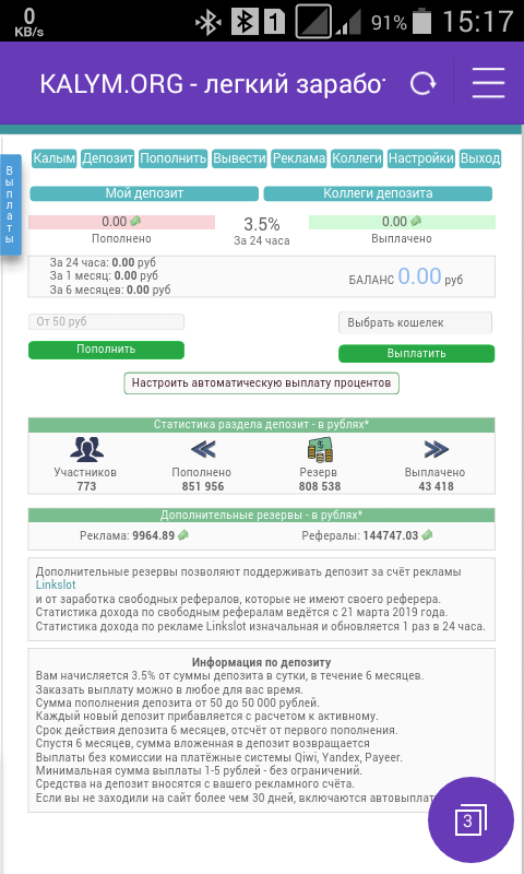 Yana bir pul ishlash usuli foizga pul qo‘yasiz. 24 soatga 3,5 dan 6 oyga.