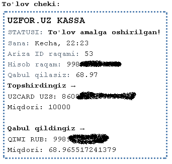 UZCARD UZS: 8600***********siz ham to'lovni amalga oshirmagansiz.