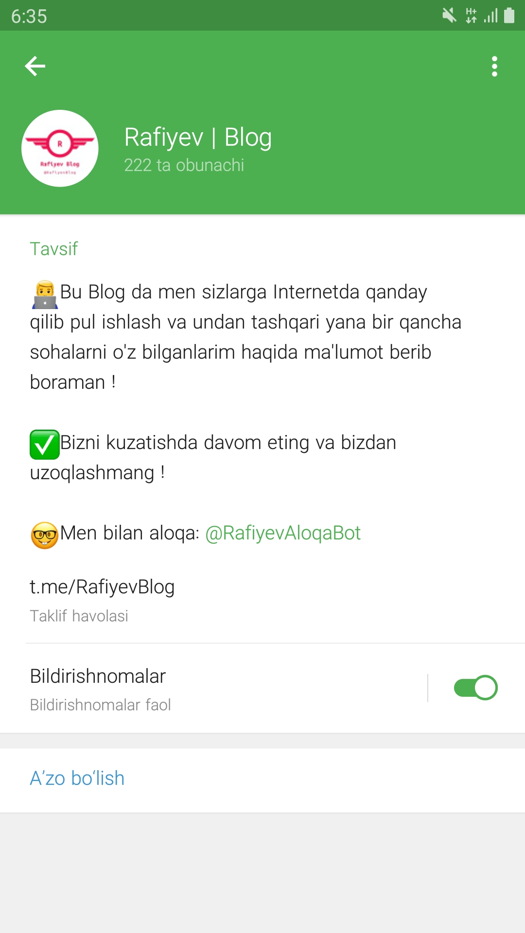 Forundaham bo'di va telegramda blog ochdi muqaddima ham bo'ldi endi mundarijaga o'tib ketdi bu bola telegramda