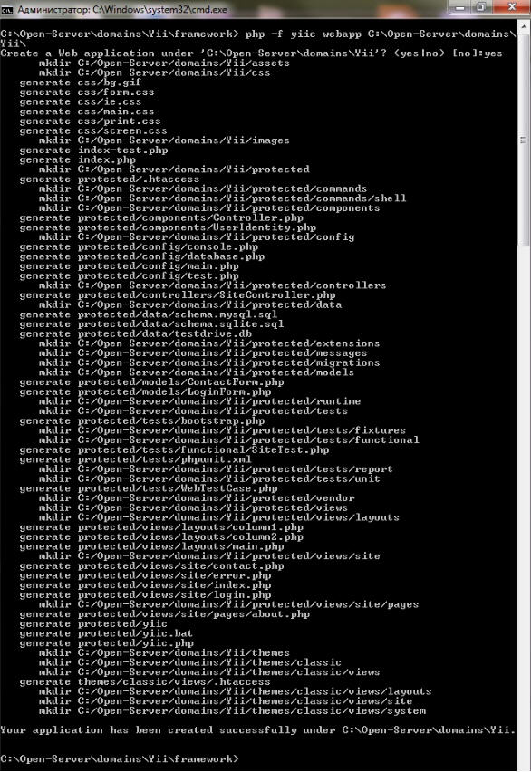php -f yiic webapp C: \ OpenServer \ domenlari \ yii-sayt \ va Enter tugmachasini bosing.
