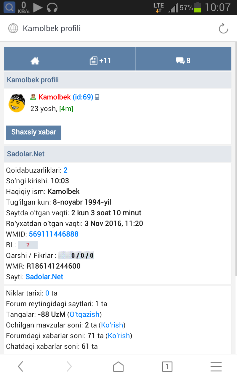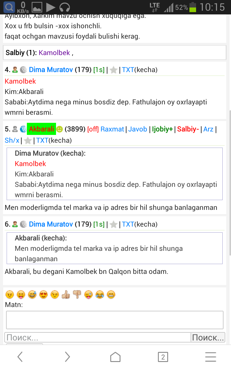 Kamol va Dima bu forumdagi muammo va boshqa forumdagi muammo boshqa boshqa barsa . Agar firibgarligini isbotlasez Forumdagi firibgarlar mavzusida yozing.