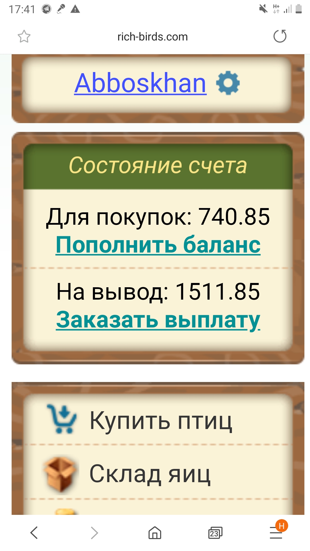 Salom dostlar kimdir menga rich birds saytiga referal yiĝib berishga yordam bersa foydani 50% ni beraman menda xozir 24milion rublga teng serebro bor aloqa +998949462200