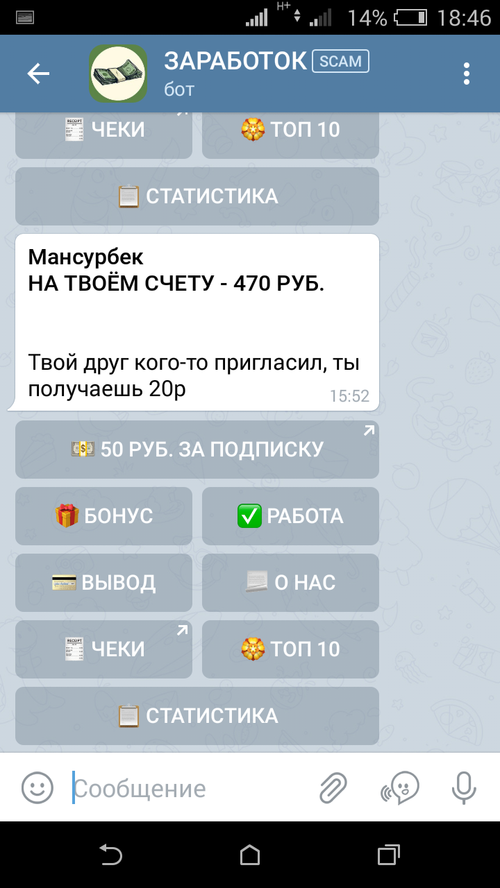 Mana Bu Bot Hozir Menga 250 rubl berdi va 50 rubl bonus ham 300 rubl ishladim sizlar ham kiringlar ! >Botga kirish< Qoyil !!!!!Ishlaganda ishlayverasiz. Yechib olsangiz yozing.