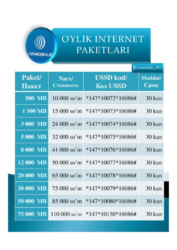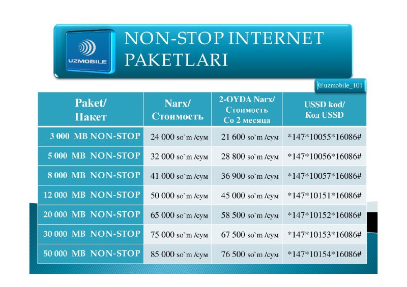 UzMobile - Internet paketlar (2)