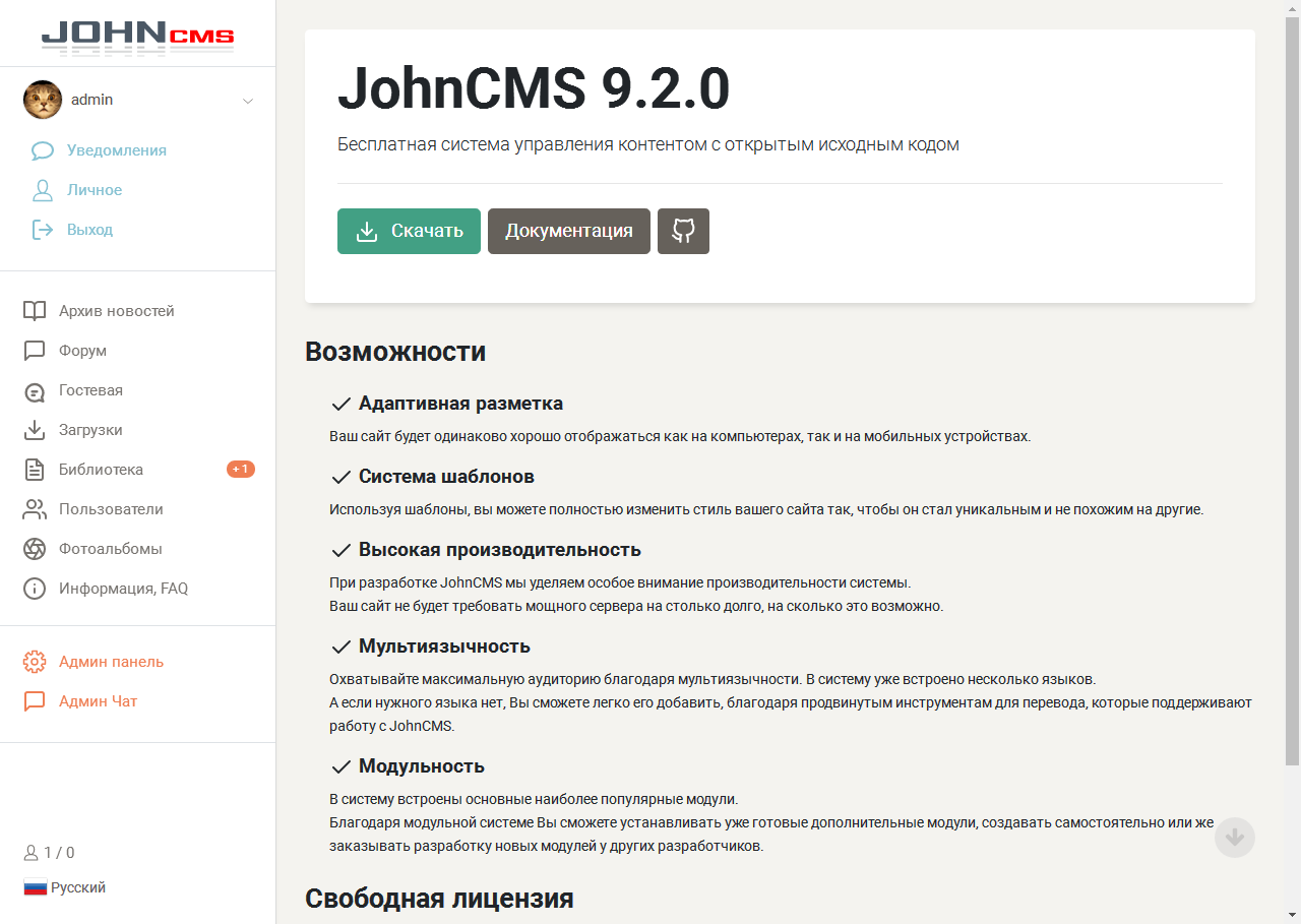 JohnCMS 9.x.x ni o'rnatmoqchi bo'lsangiz siz foydalanotgan hostingda bo'lishi kerak: Apache