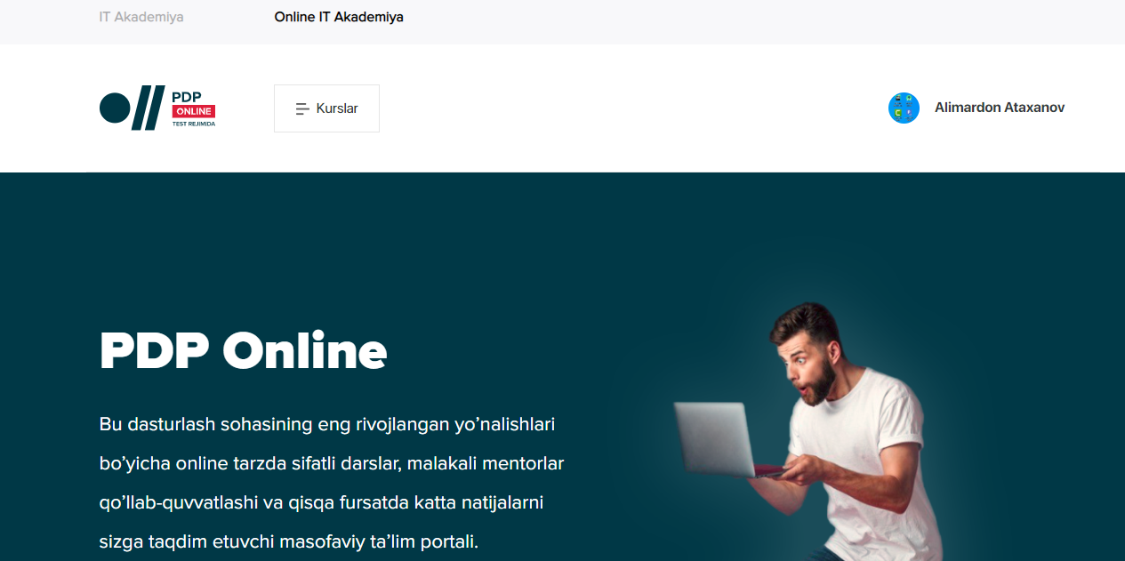 Kursga online qatnashasiz har darsdan so'ng vazifa beradi vazifani bajarsez keyingi darsga yo'llanma beradi.