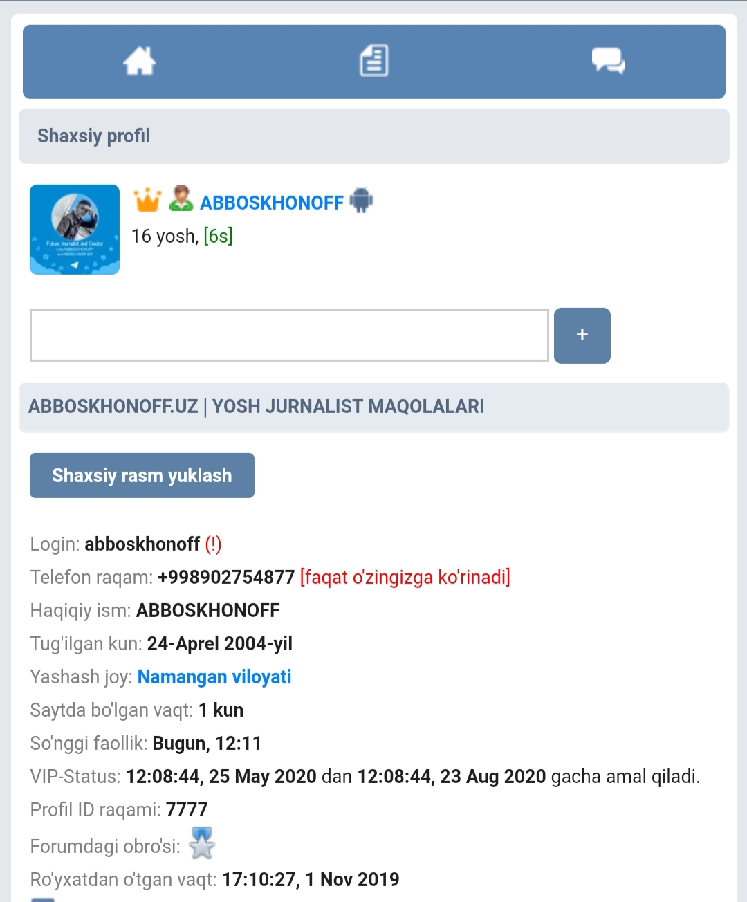 Forumda "VIP status" modula bo'yicha o'zgarishlar qilindi va VIP status harid qilganlarning statuslari qaytarib beriladi (agar 3 oydan oshmagan bo'lsa).