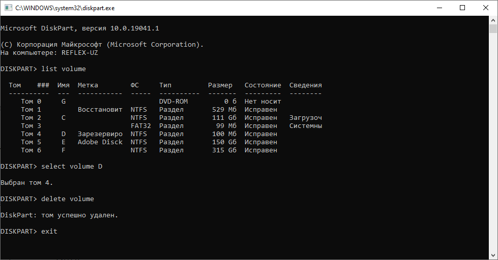 2-usul. DiskPart (buyruq satri) yordamida qattiq disk hajmini yo'q qilish