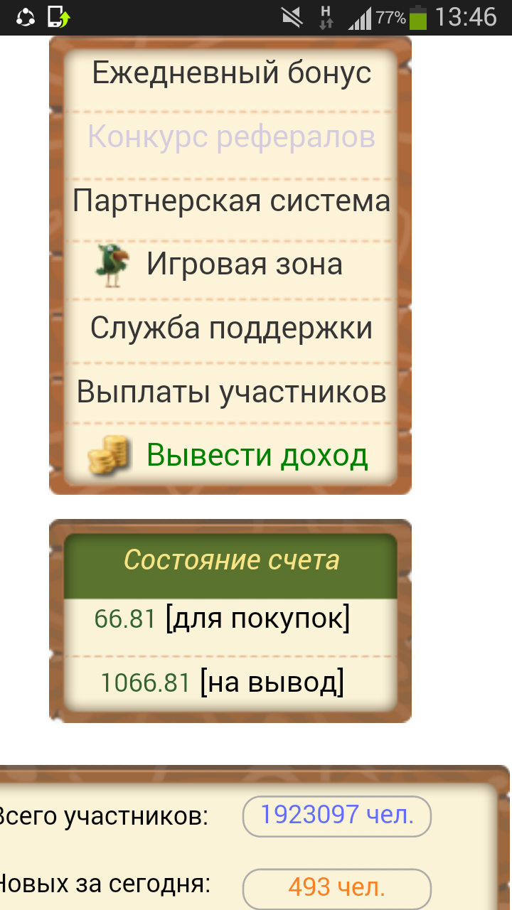 Bu saytga siz ortiqcha trafik harajat qilmaysiz. 3 yo 4 kunda bir marotaba kirib tursangiz ham bo'ladi. O'zi pul? ishlayveradi. Pullarni yechib olish uchun ?hisobni kamida ?10 rublga to'ldirish kerak. Bu davlat kursi bo'yicha atigi 1320 so'm degani. Hisobni to'ldirganga 300 ta qush sovg'aga beriladi. Bu pulni ko'proq ishlash uchun juda qulay. 10 daqiqa va tavakkal sifatida siz o'zingiz hohlagan summada pulni saytga kiritsangiz bu sizga bir oyda anchagina sof daromad keltirishi aniq. Savollar bo'lsa bemalol bervurila. Bu saytda ishlaganlar ham oramizda menimcha bor