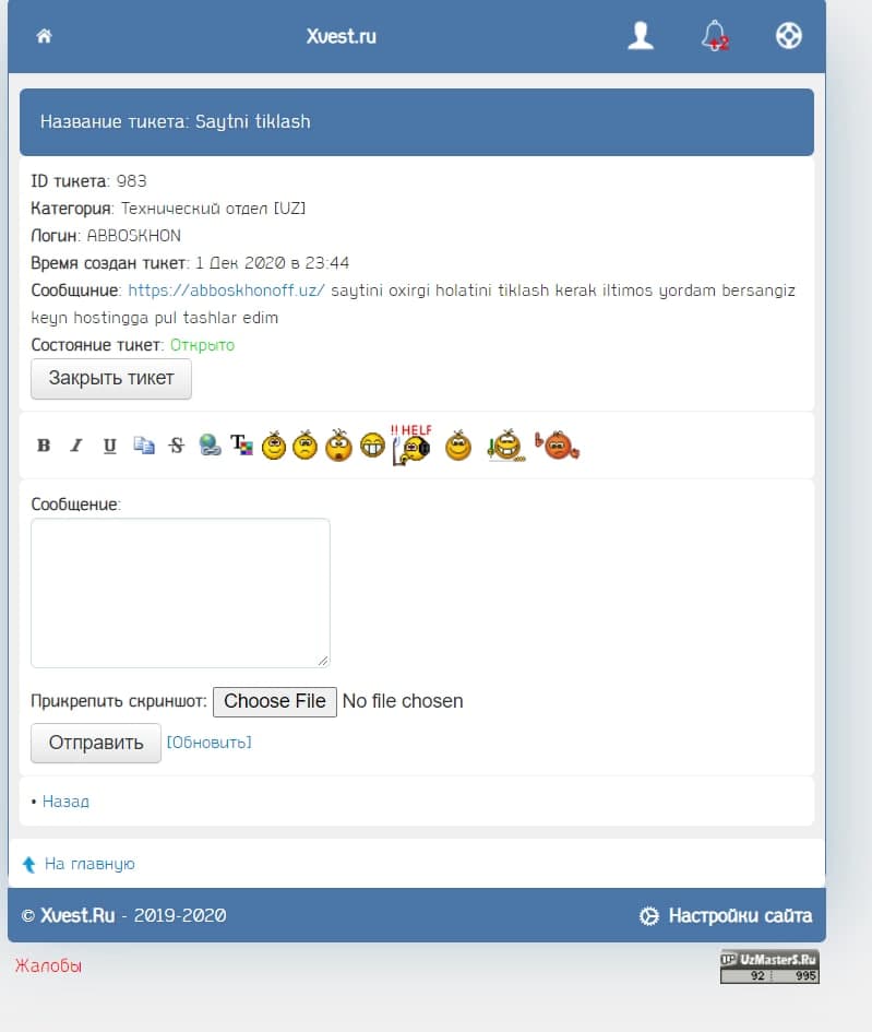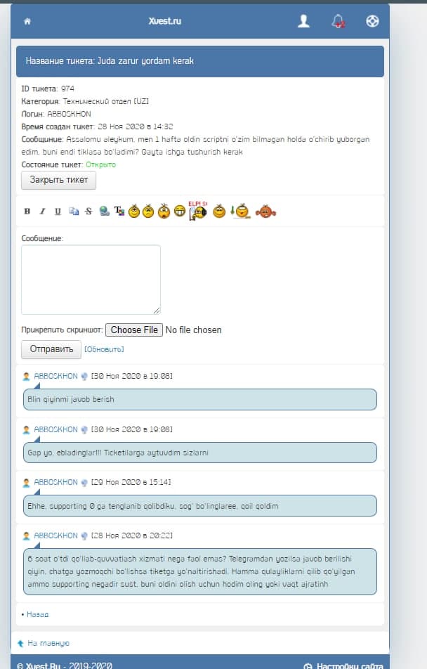 Аввало узур сиз аввал ўзингизнинг хостингизни эплаб олинг. Хамма жойда тикетга ёзинг тикетда муаммони хал қилиб берамиз деб умуман ойлаб тикетга қарамапсиз. Узур қадрини билган одам сизнинг сифати 0 бўлган хостингизга 1 тийн хам қимматлик қилишини точна англаб етади. Иштони йўқ иштони йиртиққка кулган экан